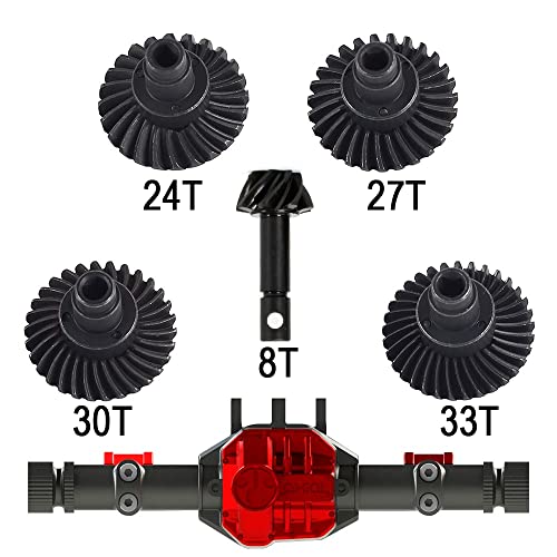 【SCX10 Ingranaggi conici 】 Ingranaggi conici in acciaio per: Axial SCX10 II 90046 90047 1/10 RC Car e AR44/45 Capra Portal Axle Parts, tra cui un ingranaggio conico 8T e un ingranaggio conico 24T.