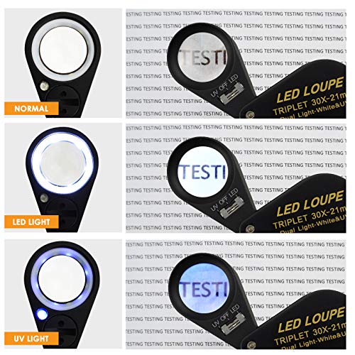 30x Ingrandimento Gioielli Loupe LED UV Luce 21mm Acromatico Tripletta Lente Ottico Bicchiere Tasca Gemma Ingrandimento Strumento Gioielliere, Francobollo Filatelica, Moneta Numismatico
