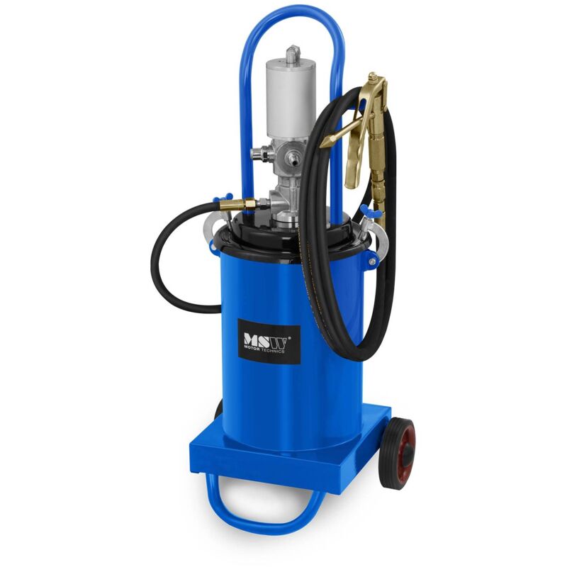 Ingrassatore pneumatico a barile - 12 litri - mobile - Pressione della pompa 240-320 bar di marca MSW ✅ Modello: PRO-G 12 ✅ Articolo: 10060838 ⬇️ Caratteristiche principali Risparmio di tempo e lavoro grazie al grande contenitore da 12 l di grasso Pressione della pompa elevata con 240 - 320 bar Tubo di trasmissione lungo (4 m) Comfort e mobilità grazie alle 2 ruote facili da muovere, alla base stabile e all'impugnatura ergonomica Montaggio semplice e costruzione robusta ⬇️ Dettagli tecnici Diametro del comparatore 1,5 “ / 35 mm Scala doppia bar / psi Valori di misurazione scala doppia 0 - 150 psi / 0 - 1 MPa Materiale Gomma, Metallo Colore Nero, Blu Pressione in uscita [bar] 240-320 Angolo di compressione 40:1 Manuale Sì Manometro Sì Lunghezza tubo 4 m Pressione dell'aria 8 Bar Capacità del contenitore 12 l Capacita della pompa per ingrassare 0.75 l/min ⬇️ Descrizione del prodotto L' ingrassatore pneumatico PRO-G 12 di MSW è un potente ingrassatore per lubrificare macchine