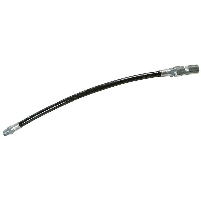 Tubo flessibile con ugello filettato cromato. Pressione di esercizio raccomandata 4500 psi. Lunghezza: 300 mm. Compatibile con gli ingrassatori Silverline. Tubo flessibile con ugello filettato cromato Pressione di esercizio raccomandata 4500 psi Compatibile con gli ingrassatori Silverline Filetto 1/8 BSPT Lunghezza: 300 mm