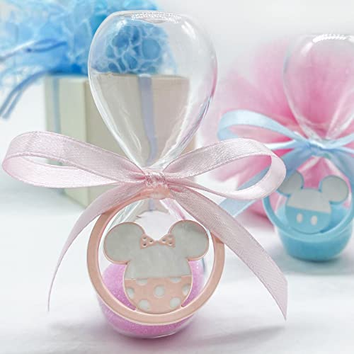 Ingrosso e Risparmio Clessidra con Sabbia Rosa o Celeste e Ciondolo a Forma di Minnie o Topolino, bomboniere Disney Nascita (Rosa)
