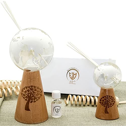 Ingrosso e Risparmio Profumatore d'ambienti a Forma di mappamondo in Vetro e Legno, Disponibile in 3 Dimensioni, bomboniere Matrimonio, Completo di Scatola Regalo (Standard-con Confezione Arancione)