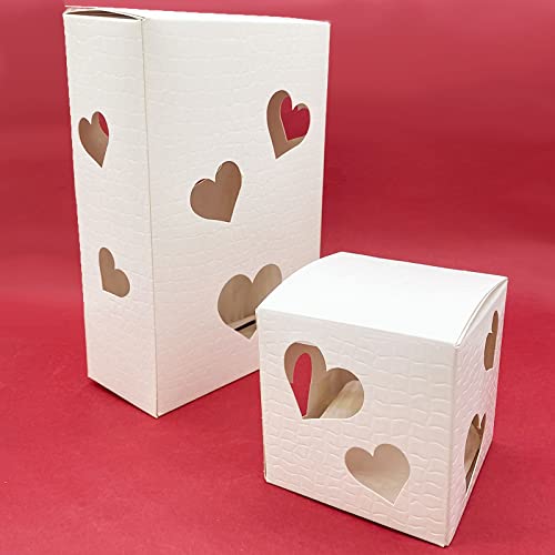 Ingrosso e Risparmio 10 Scatole a LED in cartoncino con trafori a Forma di Cuore, Disponibili in Varie Dimensioni, per bomboniere Fai da Te (10x10x26)