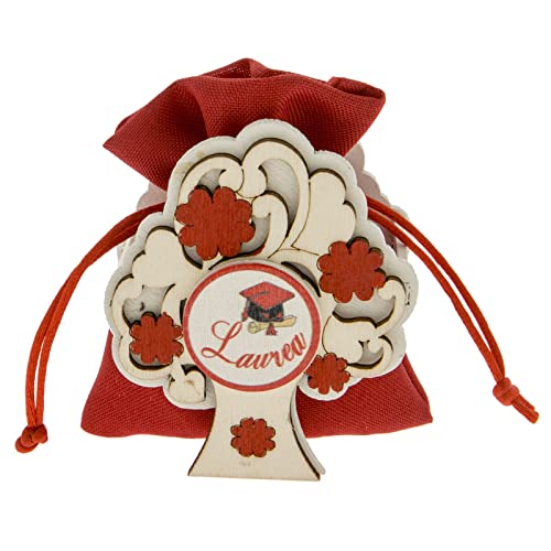 Ingrosso e Risparmio Kit 12 Scatole per Confetti in Legno Sacchetto Incluso a Forma di Albero della Vita con Scritta Laurea, Tocco e Pergamena
