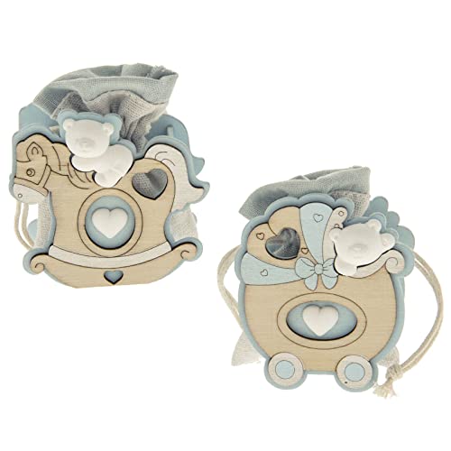 Ingrosso e Risparmio Kit 12 Scatoline a Forma di Carrozzina e Cavalluccio a Dondolo con Orsetto Bianco. Assortito in Due Varianti. Nascita.