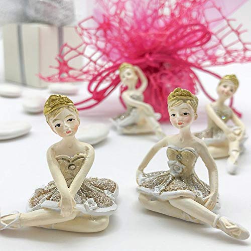 Ingrosso e Risparmio 12 Statuine in Resina a Forma di Ballerina di Danza Classica con Strass e Glitter, assortite in 4 Varianti, bomboniere Battesimo, Comunione Bambina (con Confezione Panna)