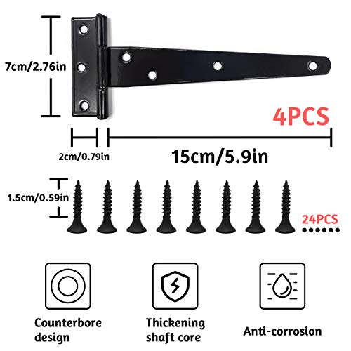 INHEMING Cerniere a T 150 mm, 4 Pezzi Cerniere per Cancello da Giardino,Cerniere Pieghevoli in Acciaio Inox - Nero