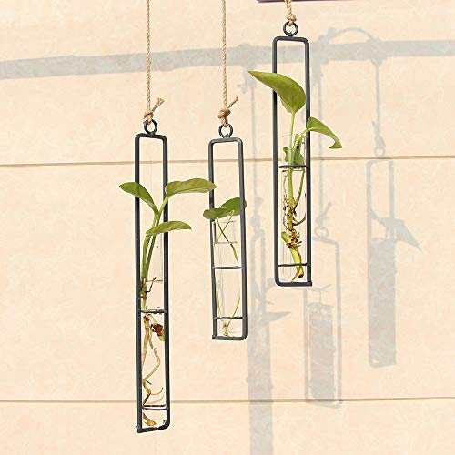 Inherited 3 Pezzi Hanging Planter terrario, Ferro battuto Vetro Trasparente provetta Fiore vasi da Appendere alla Parete Piante Vaso idroponica terrario Holder Home Decor, Small