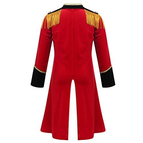 Inhzoy Costume da Direttore del Circo per Bambino Carnevale Halloween Deluxe Abito Travestimento da Maestro di Circo Smoking Ricamo in Raso Costume Rosso di Danza Ballo Rosso 7-8 anni