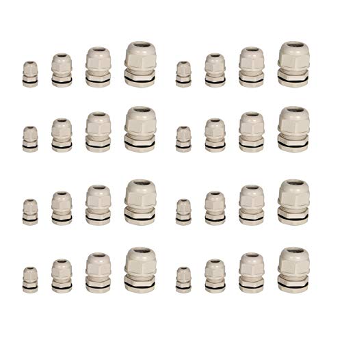 Inibud, Set passacavo da 8 pezzi, ognuno M12, M16, M20, M25, grigio con contro dado in plastica