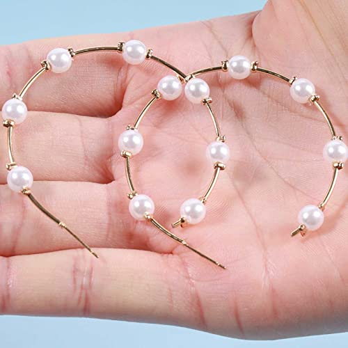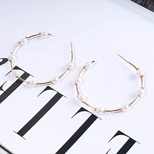 Inilbran Boho Aperto Grande Cerchio Orecchini Rotondo In Rilievo Perla Orecchini A Cerchio Oro Perla Huggies Orecchini A Cerchio Retrò Perla Penzoloni Orecchini Per Le Donne E Le Ragazze (più Piccolo)