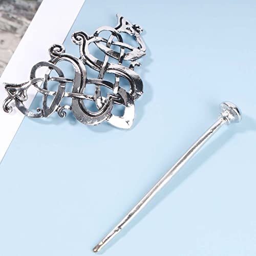 Inilbran Viking Celtic Hair Stick Tornante Retro Hollow Hair Slide Hair Clip Nodo d'argento Bastoncini per capelli Accessori per capelli per donne e ragazze Copricapo (stile A)