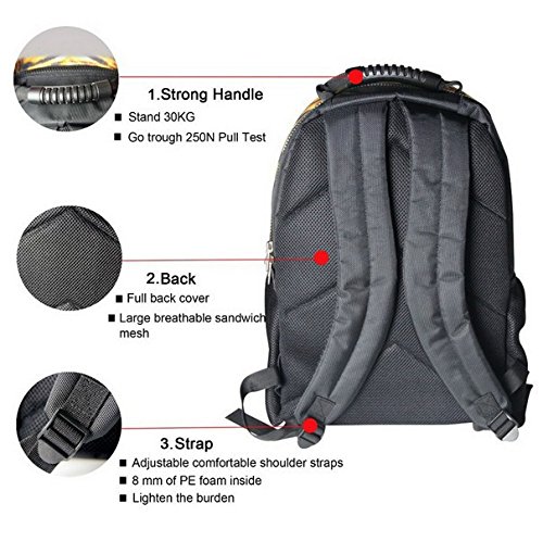 ♪ Caratteristiche: modello personalizzato unico 3D. spallacci imbottiti regolabili per comodità di trasporto, proteggere la schiena da trasportare qualcosa di pesante. Protezione cuscino imbottito è anche un bene per il laptop o tablet per evitare crash. La maniglia superiore offre mobilità rapido grab-and-go.