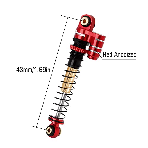 INJORA RC Ammortizzatori 43mm RC Threaded Shock Absorber per 1:24 RC Crawler Axial SCX24 AXI90081 Deadbolt Micro Crawler (Rosso,4pcs)