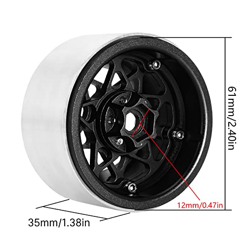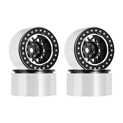 INJORA 2,2 Beadlock Ruota Cerchi Piatto Profondo Offset Negativo 10mm per 1/10 RC Crawler SCX10 RR10 Wraith TRX4 TRX6, Schwarz