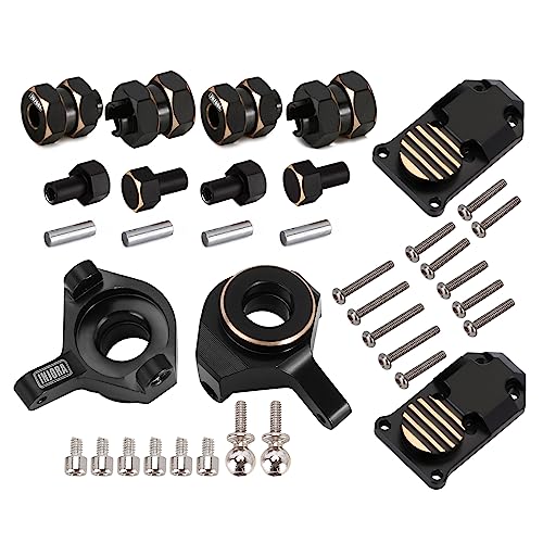 INJORA RC Brass Upgrades Copridifferenziale, fuso a snodo e kit di estensione esagonale RC per Axial SCX24 AXI90081 Upgrade Parts 1/24 RC Crawler Accessori per auto,Nero