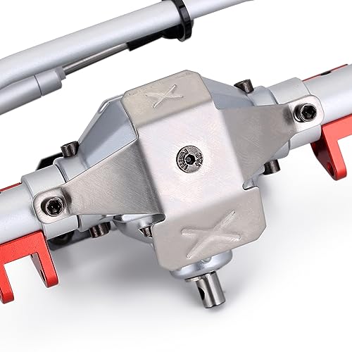 INJORA Crawler Axles RC ASSE Anteriore e Posteriore a Portale con Protettore per 1:10 RC Crawler Car Axial SCX10 & SCX10 II 90046 90047 (Argento e Rosso)