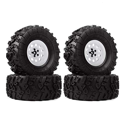 INJORA 2,2 4Pcs Pneumatici con Beadlock Cerchione Pneumatici Set per RC 1/10 RC Rock Crawler Axial SCX10 90046 90060 RR10 AX10 Wraith 90056 (Bianco)