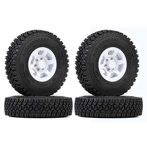 INJORA RC RC Pneumatici con RC Beadlock Cerchioni 1.55inch RC Wheel Set per 1/10 RC Crawler Car Axial AX90069 D90 TF2 Tamiya CC01 LC70 MST JIMNY (Bianco)