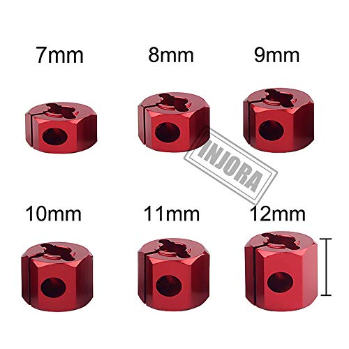 INJORA RC Ruota Hex Hub 12mm Estensione Adattatore 4pcs Metal Combinare Coupler Set per 1/10 RC Crawler Axial SCX10 90046 Tamiya MST (Rosso, 12mm)