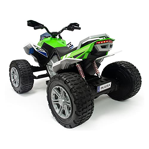INJUSA - Quad Elettrico Rage, per Bambini da 6 a 10 Anni, Batteria 24V, con Acceleratore a Pugno, Ruote in Gomma, 2 Velocità, Sospensioni e retromarcia, Velocità Massima 10 Km/h, Colore Verde