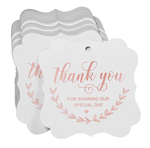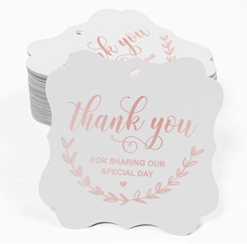 ✅ Confezione Da 100, Tag Grazie Per Aver Condiviso Il Nostro Giorno Speciale Doccia Nuziale-Baby Shower-Pensione-Matrimonio-Compleanno Simpatici E Robusti, Stampati Con Fogli Oro Rosa Su Base Colorata Vibrante. Il Tocco Finale Perfetto Per I Tuoi Favori O Eventi.