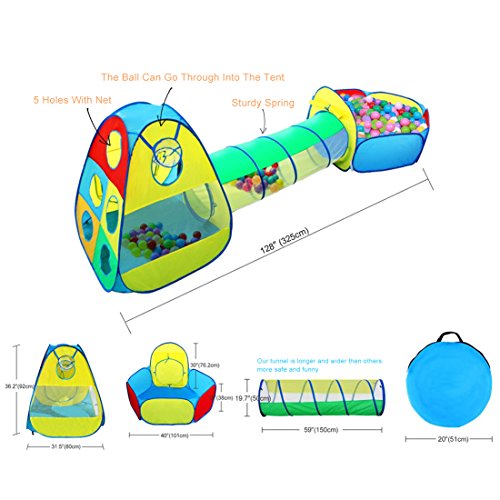 PARFART PROGETTAZIONE 3 IN 1: Tenda per bambini, piscina di palline Tunnel + + Borsa da trasporto, ma SFERE non incluso. Si consiglia l'acquisto di almeno 400 palline speciali piscina. Questo 3 pezzi per i bambini può essere utilizzato sia all'interno che extérieur.Vous in grado di creare un mini parco giochi per i vostri bambini