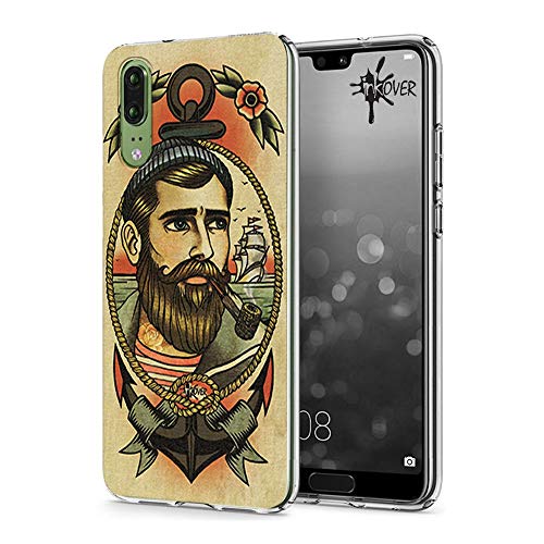 INKOVER Cover Huawe Y7 2019 Custodia Cover Protettiva Guscio Soft Case Bumper Trasparente Sottile Slim Fit TPU Gel Morbida Design Old School The Sailor Mariano Vintage retrò