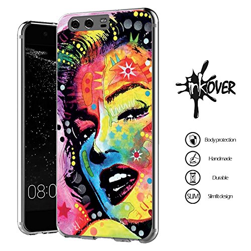 INKOVER Cover Huawei P10 Lite Custodia Cover Protettiva Guscio Soft Case Bumper Trasparente Sottile Slim Fit TPU Gel Morbida Marylin Monroe Statua libertà New York USA per Huawei P10 Lite