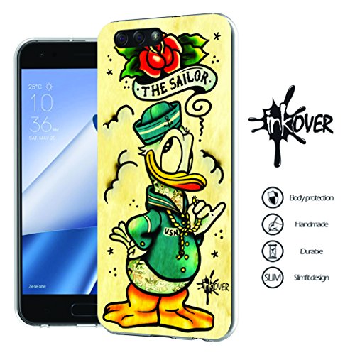 INKOVER Cover Zenfone 3 5.2" (ZE520KL) Custodia Cover Guscio Trasparente Sottile Slim Fit TPU Gel Morbida Old School Papero Marinaio The Sailor