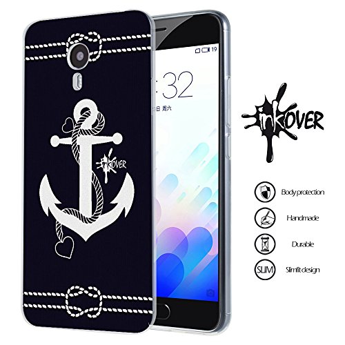 INKOVER Custodia Cover Protettiva Soft Case Guscio Protettivo Bumper Trasparente Sottile Slim Fit TPU Gel Gomma Morbida Design Ancora Vintage Anchor Sailor Mare Sea Marinaio per Meizu M3 Note