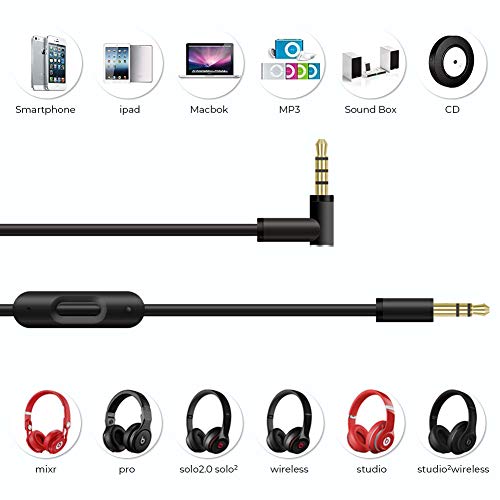 NSEN Cavo,filo con Inline Remoto Per Beats By Dre Headphones Solo,Studio,Pro,Detox,Wireless, il Colloquio di Controllo Cavo per Monster Beats by Dre Headphones Solo 2.0 & Studio Extension Cable,Nero