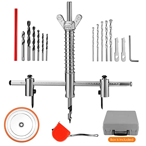 Questo kit include una taglierina per fori regolabile di livello professionale con due punte pilota sostituibili (1 punta pilota autoalimentata + 1 punta pilota HS), due set di lame da taglio sostituibili (1 set di lame in acciaio ad alta velocità + 1 set di lame in carburo di tungsteno), uno scudo antipolvere ABS, una chiave esagonale di regolazione, 5 punte per trapano per legno brad-point e 5 punte per muratura 81.3 cm, 3/16", 1/4", 5/16, 3/8", una matita da carpentiere, un metro a nastro da 2 m e una custodia resistente.