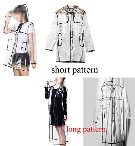 INMOZATA, impermeabile trasparente da donna, per taglie da 40 a 46, Black, long