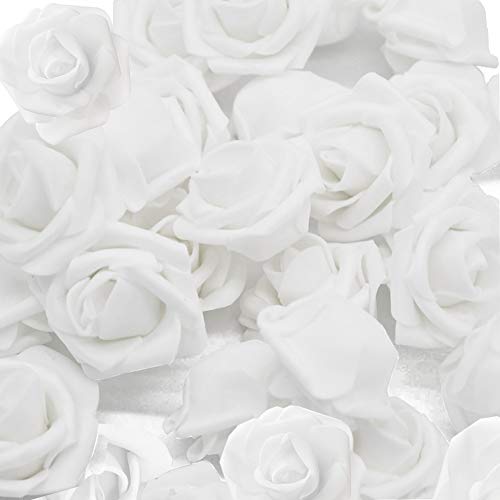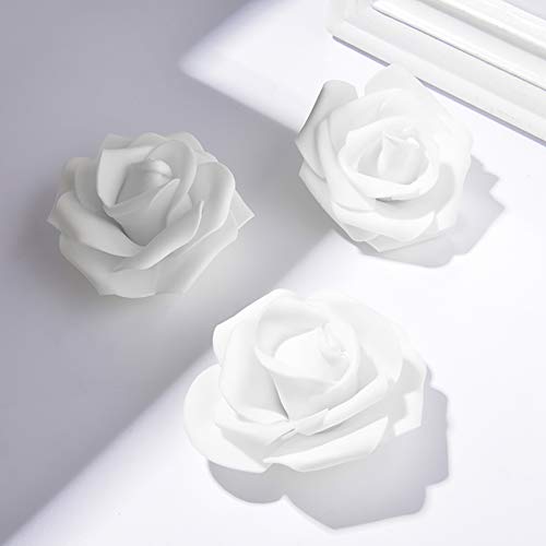 Inmozata Teste di rosa artificiali, realistiche al tatto, decorazione fai da te per matrimoni, feste, casa, esposizione, in schiuma, confezione da 50 pezzi bianco