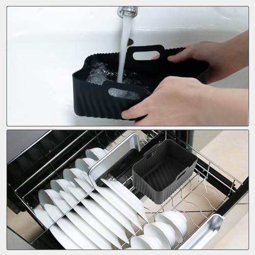 INMUA Teglia per Friggitrice ad Aria, Accessori Friggitrice ad Aria in Silicone, Contenitori per Friggitrice ad Aria in Silicone per Friggitrice ad Aria Liner Dual 7.6L - 9.5L, Nero