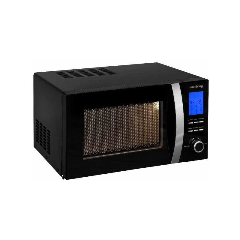 Codice: INN862 Marca: INNOLIVING. Forno A Microonde 23 Litri.Timer 60 Minuti. 5 Livelli Di Potenza Selezionabili. Piatto Girevole In Vetro (27 Cm Diametro). Display LCD e comandi digitali. Funzione Grill e scongelamento .Segnale acustico di fine cottura. Tipo Di Apertura: Maniglia. Potenza Microonde: 800W. Potenza Grill: 1000W. Alimentazione: 230V ~ 50Hz. Dimensione Prodotto: A 27,8 cm x L 48,3 cm x P. 39,6 cm