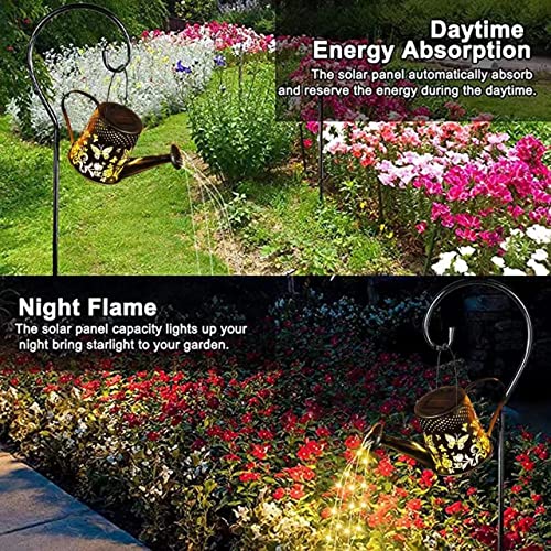 Design unico a farfalla e 60 LED lampeggianti: l'annaffiatoio è completamente aggiornato e anche il corpo si illumina. Farfalle svolazzanti adornano il tuo giardino. Le luci solari decorative funzionano bene quando brillano al buio. 6 linee luminose lampeggianti, 60 luci bianche calde a led ad alta luminosità sono collegate con fili di rame e le perline lampeggianti imitano realisticamente l'effetto dell'acqua corrente, dandoti un'esperienza visiva unica.