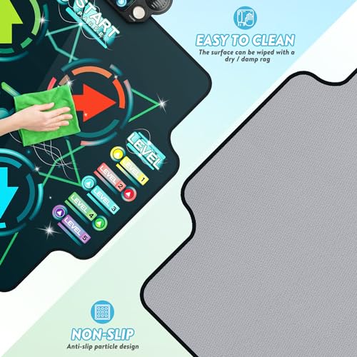 【Durevole e sicuro】 Il tappetino da ballo è dotato di strisce antiscivolo sul fondo in modo che non scivoli in modo casuale, così i bambini possono giocare in tutta tranquillità. Tappetino da ballo per bambini con superficie impermeabile, facile da pulire, pieghevole per riporlo o rimuoverlo facilmente.