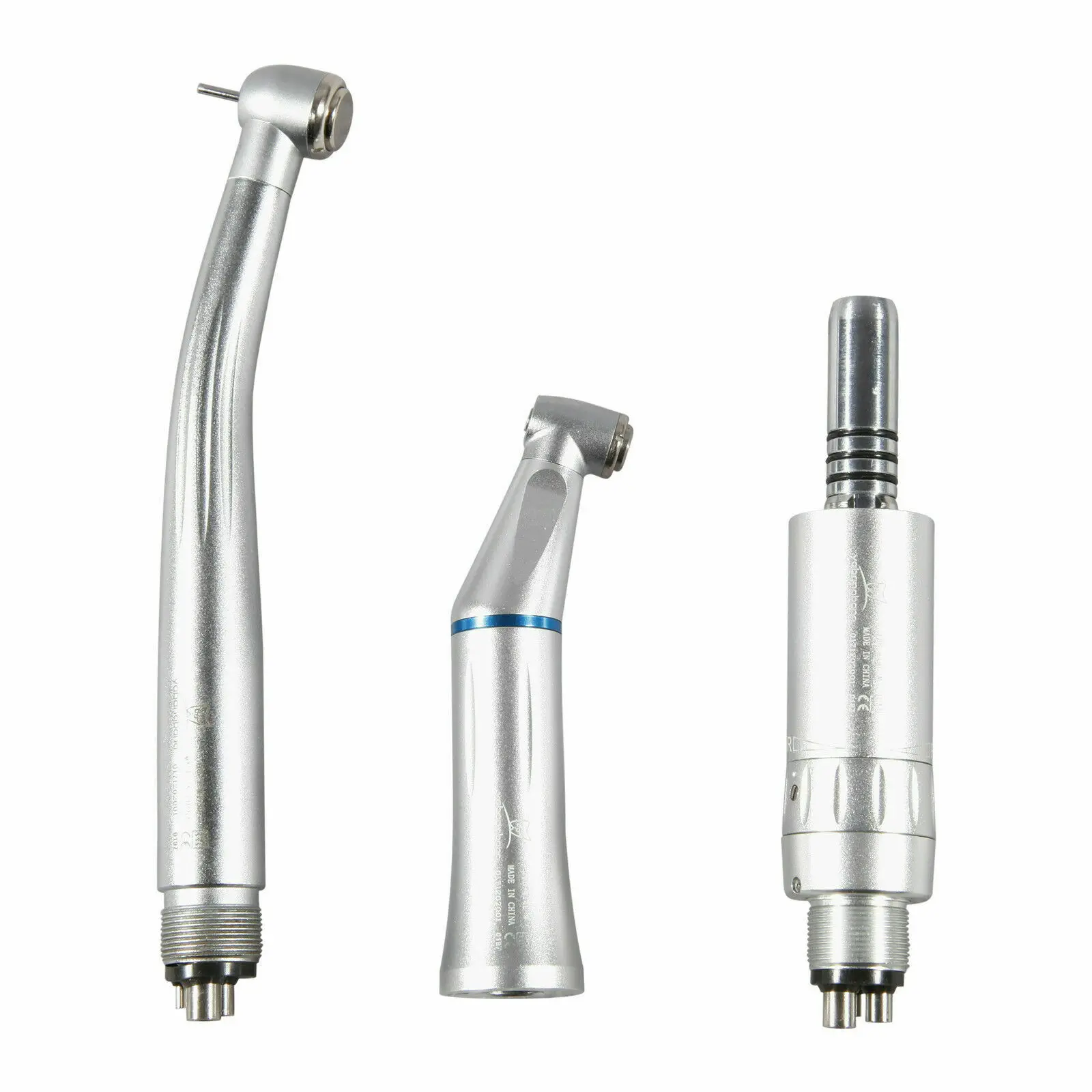 Inner Spray Dental Contra Angle Air Motor 4 Hole&E-generator LED High Speed Handpiece Triple Spray Push Button Turbine