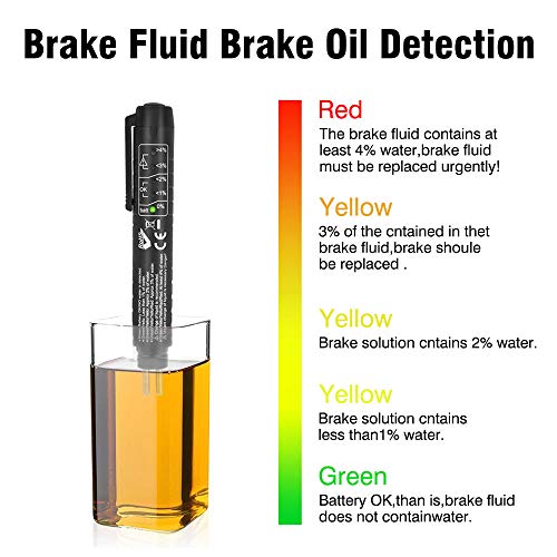 【Display a 5 LED】: grazie ai 5 LED, la percentuale di acqua nel liquido dei freni viene visualizzata con precisione da 0% a oltre il 3% in 5 livelli. Luce gialla, 1%-2% significa che può essere utilizzato continuamente, la luce rossa 3%-4% significa che il liquido dei freni deve essere sostituito.