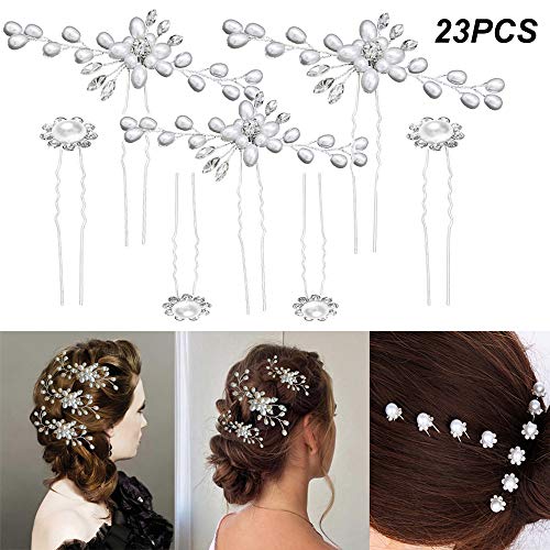 InnoBase Accessori Forcina Spille Clip Perni di per capelli da sposa Fermagli per capelli con strass forcine di strass Perni di capelli della perla per le Donne e le Ragazze (23pcs)