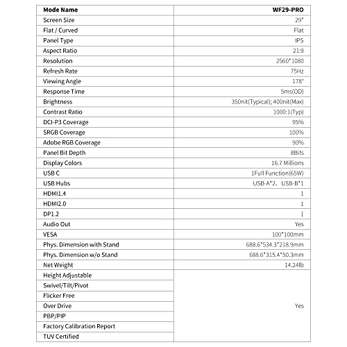 【Risoluzione 21:9 UltraWide & Full HD】Il monitor Innocn WF29-PRO offre il 33% di spazio dello schermo in più rispetto al display con risoluzione FHD (1920 x 1080), dando un rapporto di aspetto di 21:9.