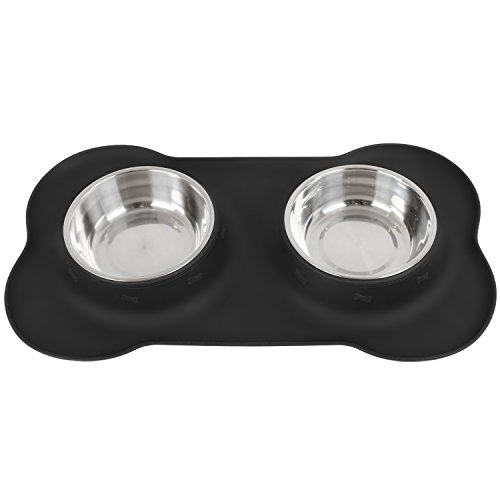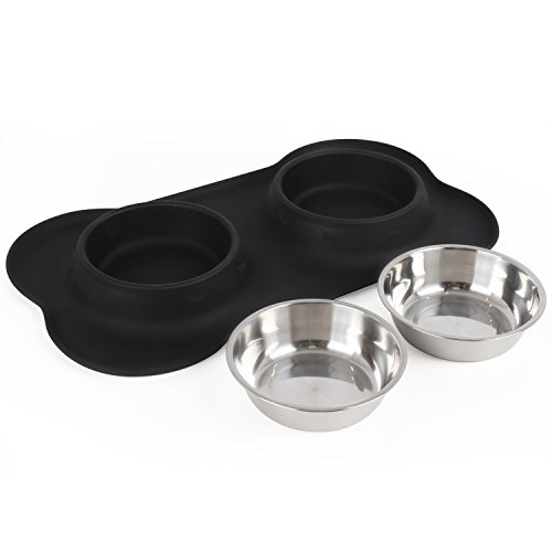 InnoGear Cane Ciotole con Beccuccio in Silicone Vassoio Doppio in Acciaio Inossidabile Ciotole con Antiscivolo a Forma di Osso Pieghevole Rimovibile Cane Gatto Cibo Acqua Ciotola, Medio