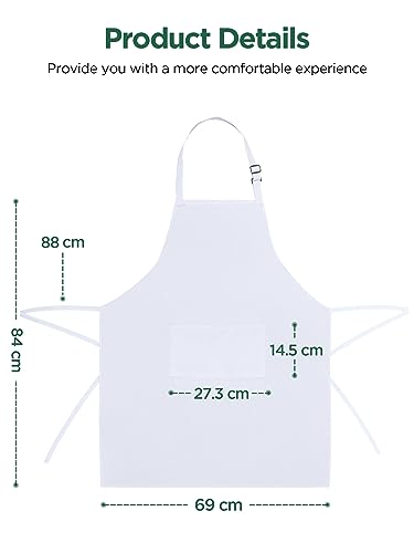Tasche convenienti: I nostri grembiuli includono due ampie tasche frontali, fornendo molto spazio per il ripostiglio di schede delle ricette, penne, termometri per carne e altro ancora.