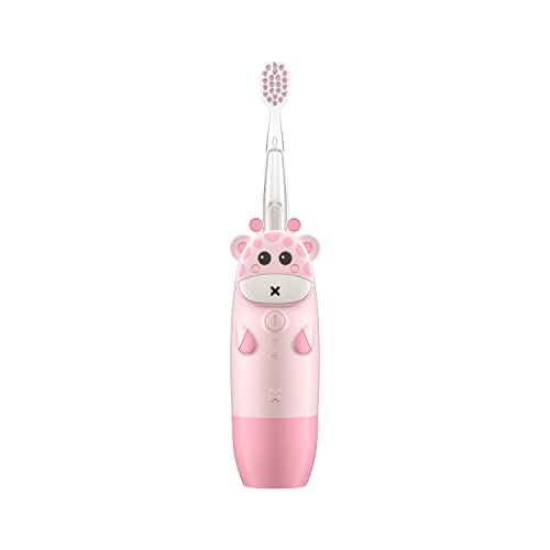 InnoGIO GIOgiraffe Rosa, Spazzolino da Denti Elettrico per Bambini da 2 a 12 Anni, Timer e Luce con Testina di Ricambio