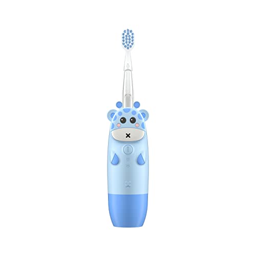 InnoGIO GIOgiraffe Blu, Spazzolino da Denti Elettrico per Bambini da 2 a 12 Anni, Timer e Luce con Testina di Ricambio