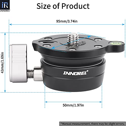 INNOREL LB50 - Livellatore a sfera per treppiedi, 3/8", con livello di bolla offset, inclinazione 15°, filettatura 3/8" per fotocamere Canon, Nikon, Sony DSLR