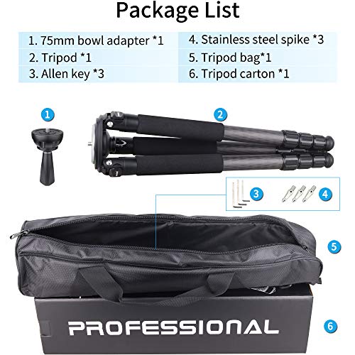 INNOREL LT324C Systematic Treppiede in Carbonio 146cm,Carico Massimo 30kg,Tubo Massimo 32mm 4 Sezioni,con Adattatore 75mm/Borsa,Treppiedi Professionale Impieghi Gravosi Ultra Stabile(LT324C+BL75N)