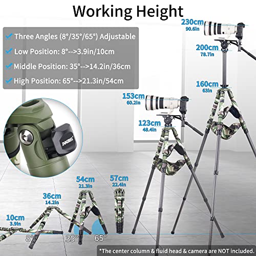 【Ripresa multiangolare】 Tutte le tre gambe possono essere regolate a tre angoli (8°/35°/65°), è possibile ottenere un'altezza più adatta mettendo fuori la fibbia dei tubi. Dotato di punte intercambiabili in gomma avvitabile e punte in acciaio inox, è possibile utilizzare il treppiede in diverse situazioni, soprattutto su terreni irregolari.